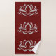 Bath Towel: Three big silver lotus flowers on a burgundy red background.