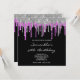 Silver Magenta Glitter Drips Black 50th Birthday Invitation