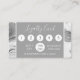 Silver Marble Girly Minimalist Loyalty Stamp Buy 5 Get a percentage off Discount Card with white hand lettered typography for the monogram on the back of the card with business details. The Silver Marble Girly % Off Loyalty or Rewards Business Card can be customised for any profession and contains 5 punches and editable discount amount on the front of the Loyalty Punch Card . Please contact the designer if you need matching customised products.