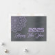 Greeting wish card Happy New Year written in English in mauve font with mandala on a silver background - editable text and background