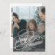 Elegant faux silver script overlay 5 custom photos, family name and text personalised Christmas holiday card.