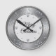 Silver Metallic Diamond Merry Christmas, A elegant check Round Clock made of silver metal, decorated with diamond, scattered bronze, and silver glitter drops, with the word merry Christmas on it.