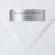 A faux silver metallic looking background. Template for names and address, black coloured letters. The names are written with a modern hand lettered style script. Black letters. Perfect for Christmas mail or your everyday mail.