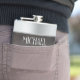 Modern design flask featuring a metallic design in silver grey with a faux leather band. Beautiful for a groom, Father's Day or boss ...