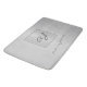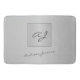 Trendy luxury exclusive looking monogrammed bath mat featuring a faux silver square over a stylish classy metallic light grey background. + Personalise it with your black script signature name or family name and monogram name initials.