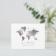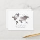 Metallic silver effect world map wedding save the date postcard. With a beautiful classic silver world map, moveable heart to position over your location of choice and space for name location and additional details. Ideal for foreign location weddings or just because you love your state