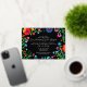Perfect for a destination event or a Mexican themed party, this horizontal and fully personalised rehearsal dinner invitation features a frame of flowers and foliage inspired by the colourful embroidery of native Mexican artisans and with shining accents of real raised silver foil all against a moody black background.