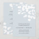 This Trendy Modern Wedding Invitation features original hand drawn Eucalyptus Plant Greenery by Paula Pecevich • La Bella Rue // Colour is in a light silver misty blue with additional wording and design on the back of the card. The back is optional; you can delete and add a solid colour if you like.