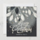 Minimalist holiday card design with a painting-inspired theme. The card features a simple navy blue and white colour palette, with an elegant font with the message "Merry Christmas" in red colour. The design evokes a natural, festive feel with elegant, hand-painted details, capturing a modern yet timeless aesthetic.