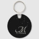 Ms. Monogram's name and monogram key chain design features your monogram in silver large modern script typography and your name underneath it in white matching typography. The design is accented with faux silver sparkles. #Monogram #KeyChain #GiftIdeas