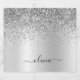 Silver Monogram Glitter Sparkle Girly Script Liquor Bottle Label