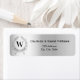 A faux silver looking background. Decorated with a wreath. Personalise and add your name, address and family monogram initial.