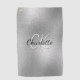 A faux silver metallic looking background. Personalise and add a name, your monogram initials. The name is written with a hand lettered style script.