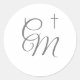 Silver Monogrammed with Cross Classic Round Sticker