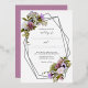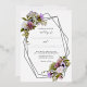 Introducing our Silver Multicolored Floral Geometric Wedding Foil Invitation, perfect for a spring bohemian celebration. Featuring realistic multi-coloured flowers and greenery with modern geometric designs, this invitation showcases a stunning blend of purple and pink blooms, light blue and white accents, and elegant script typography. The addition of silver foil adds a touch of rustic yet modern elegance, making it the ideal choice for a floral wedding with a contemporary twist.