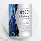 Navy blue and silver agate 60th birthday party invitation. Elegant modern design featuring royal blue watercolor agate marble geode background, faux glitter gold and typography script font. Trendy invite card perfect for a stylish women's bday celebration. Printed Zazzle invitations or instant download digital printable template.