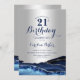 Silver Navy Blue Agate Marble 21st Birthday Invitation