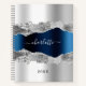 Faux silver and navy blue metal and agate, marble stone print as background Personalise and add your name. The name is written with a modern hand lettered style script.