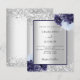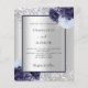 Silver navy blue floral wedding invitation