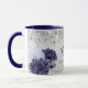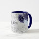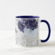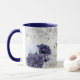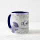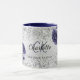 A faux silver looking background decorated with navy blue and light blue florals, flowers. Personalise and add your monogram initials, first name and full name.