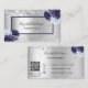 A faux silver looking background decorated with navy blue and light blue florals, flowers. Personalise and add your name and text on front.