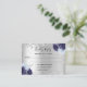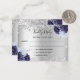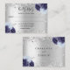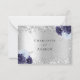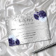 A faux silver metallic looking background, decorated with sparkling faux glitter and navy blue and light blue florals. Personalise and add the reply by date and your names.