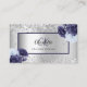 A faux silver looking background decorated with navy blue and light blue florals, flowers. Personalise and add your monogram initials, first name and full name on front.