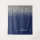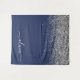 Navy Blue and Silver Sparkle Glitter Script Monogram Name and Initial Tapestry. This makes the perfect sweet 16 birthday, wedding, bridal shower, anniversary, baby shower or bachelorette party gift for someone that loves glam luxury and chic styles.