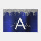 Silver Navy Blue Glitter Brushed Metal Monogram Doormat