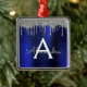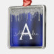 Silver Navy Blue Glitter Brushed Metal Monogram Metal Ornament