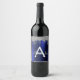 Silver Navy Blue Glitter Brushed Metal Monogram Wine Label