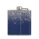 Silver Navy Blue Glitter Girly Monogram Name Hip Flask