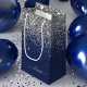 Silver Navy Blue Glitter Girly Monogram Name Small Gift Bag