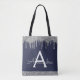 Silver Navy Blue Glitter Spakle Elegant Monogram Tote Bag