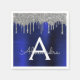 Silver Navy Blue Glitter Sparkle Monogram Name Napkin