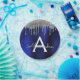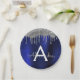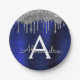 Silver Navy Blue Glitter Sparkle Monogram Name Paper Plate