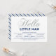 Celebrate a special day for your loved one with this modern baby shower invitation! This design features stylish typography " Hello Little Man" in glitter silver texture & navy blue.