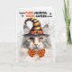 This Norwegian Forest Cat has the colour variation called Silver Mackerel and looks so sweet in orange and black Halloween accessories which pairs with a humourous feline message.