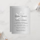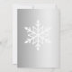 A simple yet elegant design featuring a white snowflake on a silver ombre background, with the words "Bridal Shower" and the name of the bride-to-be in charcoal grey script and the remaining text in sans serif font. The snowflake design is repeated on the reverse.