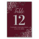 Silver on Burgundy Elegant Frilly Wedding Table Number