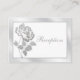 This faux embossed silver peony on white linen reception enclosure card matches the 25th wedding anniversary invitation and other items shown below. It can also be customised to be a map or directions card.