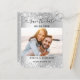 A modern wedding Save the Date photo card. A faux silver looking background decorated with faux glitter, sparkles. Personalise and add your photo, wedding details and your own qr code to your wedding website.