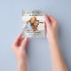 A modern wedding Save the Date photo note. A faux silver looking background decorated with confetti. Personalise and add your photo, wedding details and your own qr code to your wedding website.