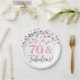 70 and fabulous birthday party plates with silver and pink glitter pattern confetti.