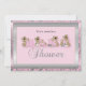 Silver & Pink Damask Teddy Bears | Baby Shower Invitation