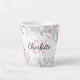 A white background decorated with pink and white florals, flowers and faux silver glitter, sparkles. Personalise and add your monogram initials, first name and full name.
