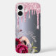 Silver pink glitter drips flowers name Case-Mate iPhone case