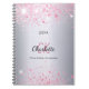 A faux silver metallic looking background decorated with pink faux glitter dust. Personalise and add your first name, monogram initials, full name and a year.