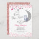 Silver Pink Owl Moon Baby Shower Invitation