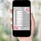 Faux silver looking background decorated with blush pink and white florals, flowers and faux silver glitter, sparkles. Personalise and add your names and wedding details. Black letters.